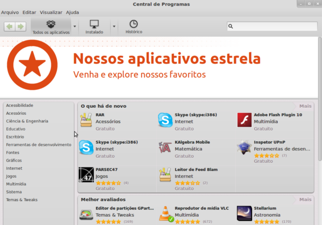 Você já deve ter ouvido falar, ou mesmo visto, a loja oficial de aplicativos do Ubuntu, chamada Central de programas. Nela você encontra diversos aplicativos gratuitos ou não. Há uma maior facilidade para pesquisar e instalar estes aplicativos.