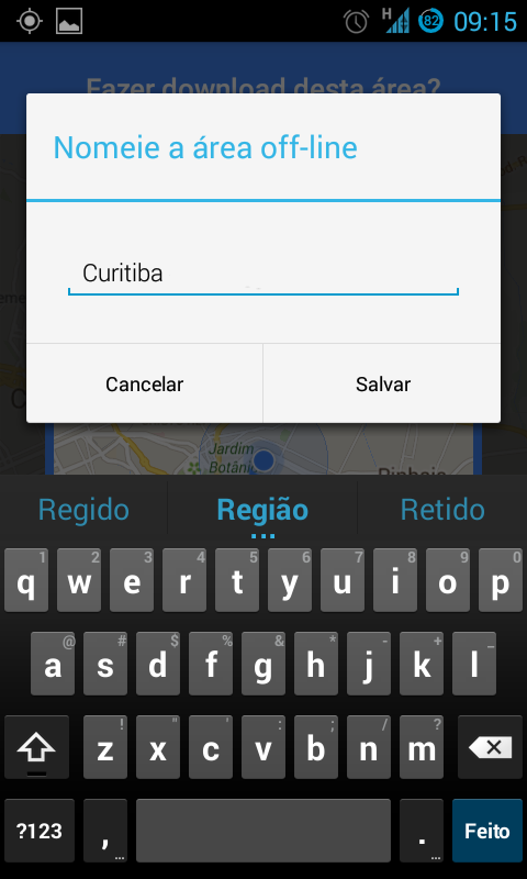 Depois selecione a área que deseja fazer o download, mas lembre-se, quanto maior a área selecionada, maior será o arquivo a ser baixado e, dependendo da quantidade de espaço restante em seu aparelho, não será possível selecionar uma área muito grande. Faça o download e dê um nome para a área selecionada.