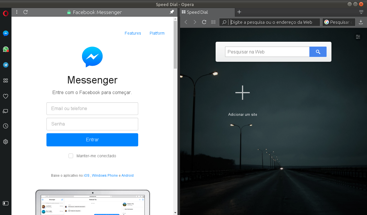 Novo Navegador Opera - Acesso à WhatsApp, Facebook Messenger e Telegram sem sair do navegador