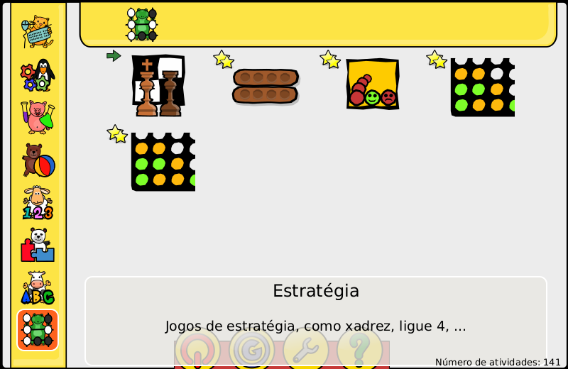É dividido em categorias de atividades lúdicas, que incentivam o conhecimento por meio de atividades divertidas como jogos de quebra cabeça, estratégia, conhecimento em braile, jogos de memória, atividades de matemática, leitura, entre outras diversas atividades.