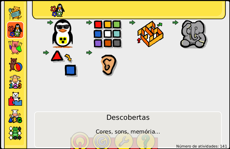 GCompris é uma suíte educacional que oferece atividades para crianças partir dos 2 anos de idade. Na versão que será apresentada aqui possui mais de 141 atividades.