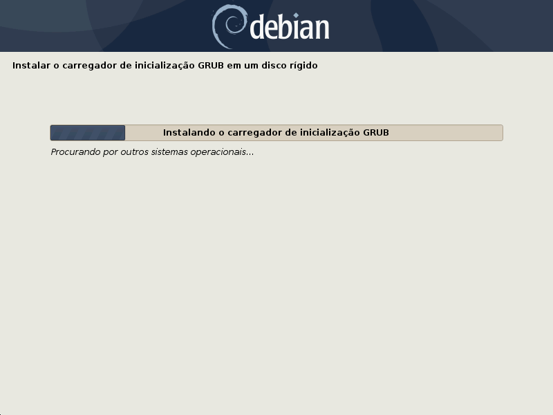 A partir de agora inicia-se a instalação do GRUB2, que é o carregador de inicialização do Debian. Este ponto é muito importante e se o instalador for interrompido antes dele você não conseguirá inicializar o sistema.
