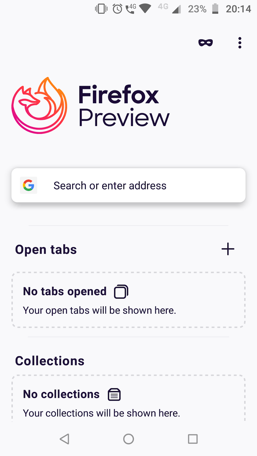 O Firefox Preview é a versão inicial de um navegador Firefox que ainda está em desenvolvimento, e é a base para o que será o novo navegador principal da Mozilla para Android (Firefox Fênix). Utilizando recursos do Focus, melhora a experiência de navegação e privacidade.