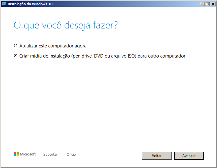 Como esta matéria é uma continuação direta da Atualizando o Windows 7 para o Windows 10 gratuitamente - Parte 1, serei mais objetivo em mostrar a criação da mídia.